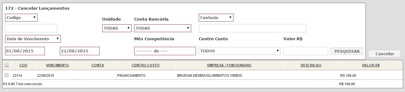 Está disponível no módulo Financeiro a ferramenta para cancelar lançamentos a pagar em lote.