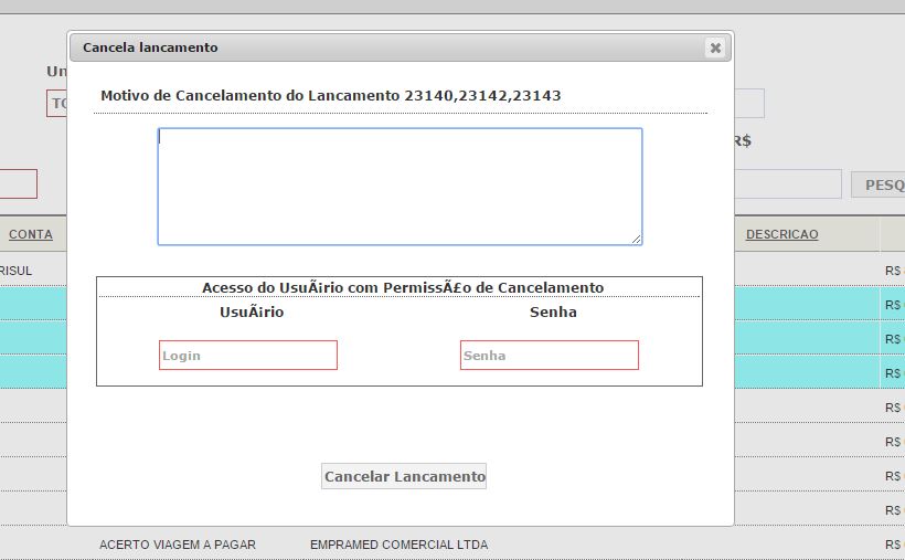 Informe o motivo e usuário e senha com permissão para realizar o procedimento.