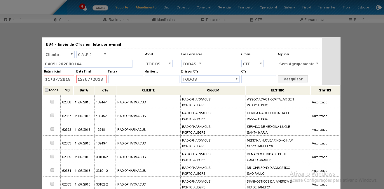 Entre as funcionalidades do TMS Brudam relacionadas a CT-e, existe o envio de CT-e em lote. Esta funcionalidade agiliza seus processos de forma muito eficaz.