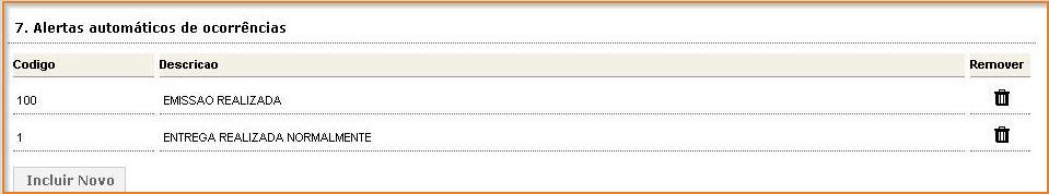 - No item 7: “Alertas automáticos de ocorrências”, são apresentadas as ocorrências inseridas: