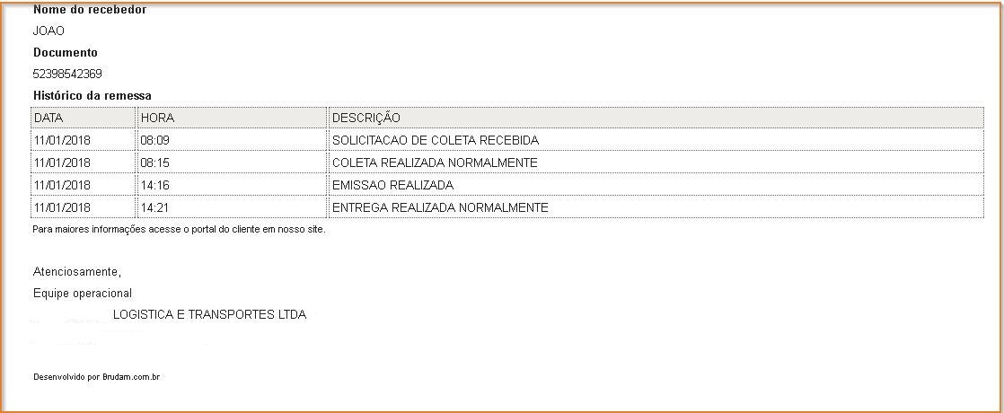 - O alerta de reenvio da confirmação de entrega é recebido por e-mail: