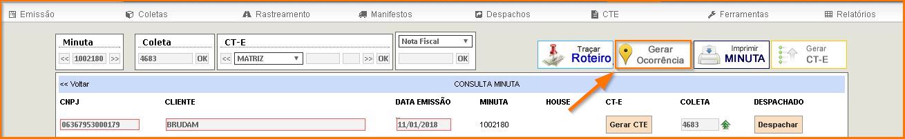 - Clique no botão “Gerar ocorrência”, como mostra a figura abaixo;