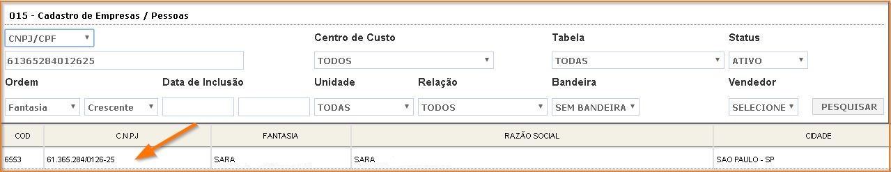 - Clique na empresa listada, como mostra a figura abaixo: